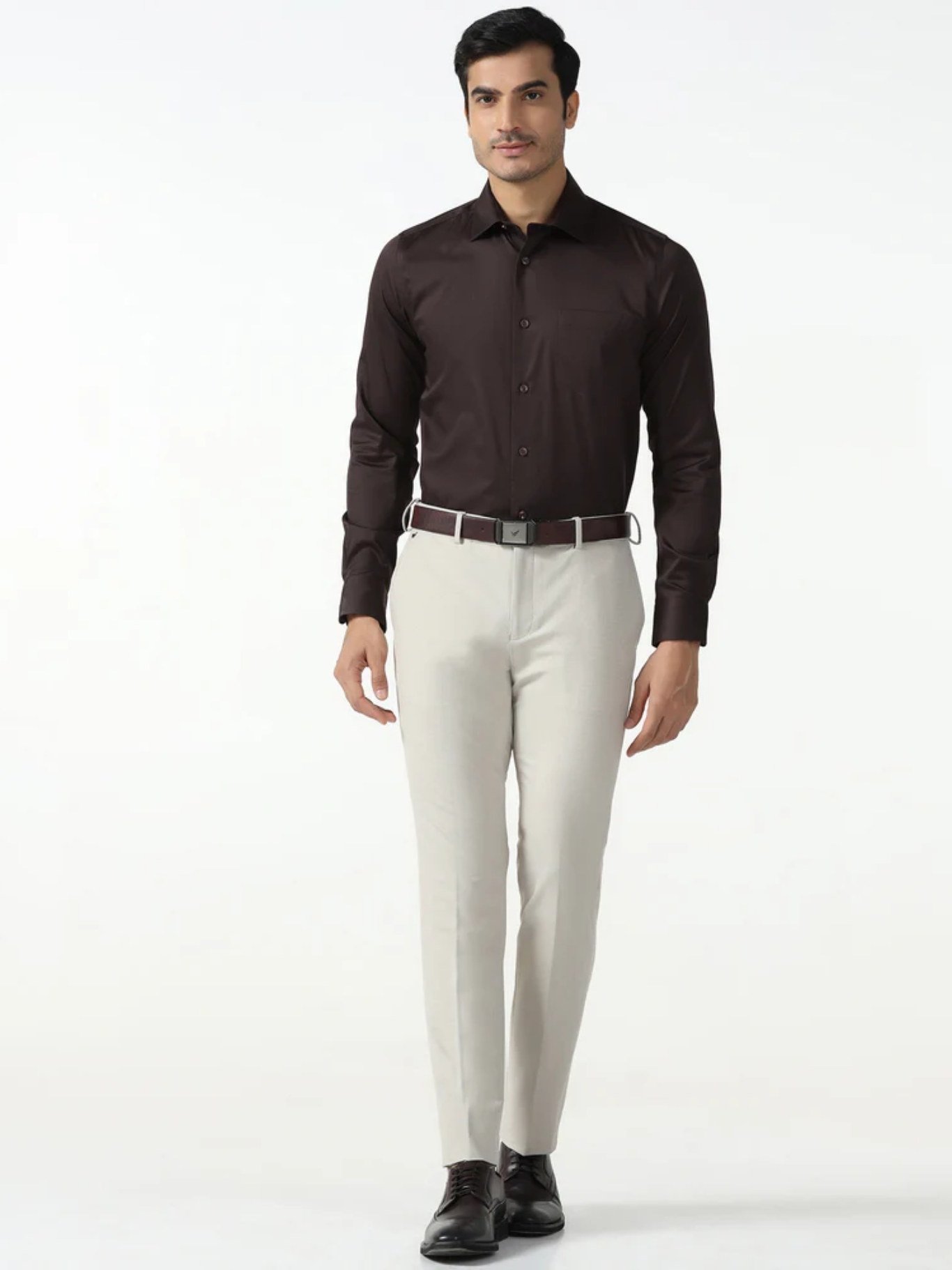 Color Details: Chocolate Sauce Pattern: Solid Collar: Semi-Cutaway Collar Sleeve Type: Full Sleeves