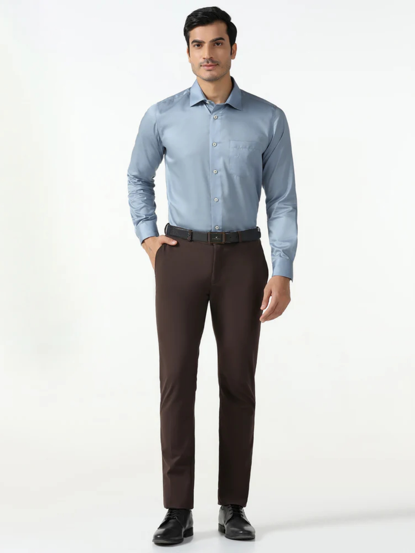 Color Details: Blue Pattern: Solid Collar: Semi-Cutaway Collar Sleeve Type: Full Sleeves